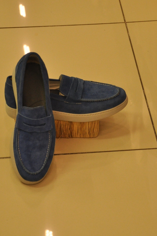 Dekoratif Dikişli Erkek Loafer Klasik Mavi Ayakkabı
