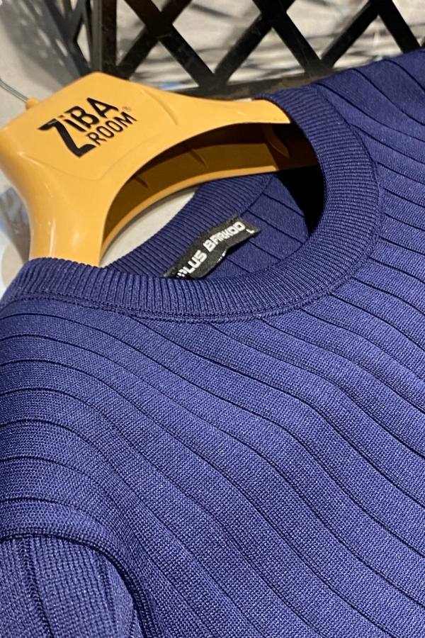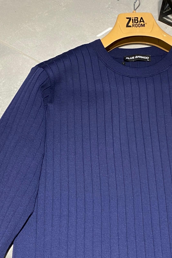 İnce Çizgili Yuvarlak Yaka Triko Kazak