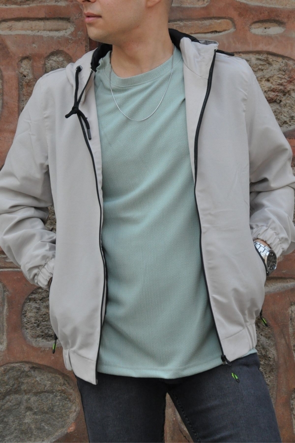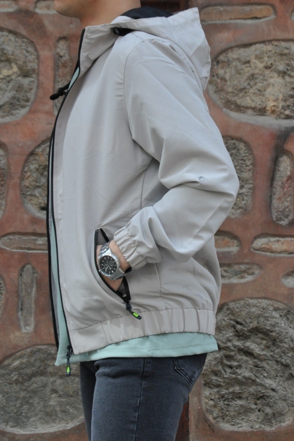 Gri Kapüşonlu Fermuarlı Cepli Erkek Mont nefes alan esnek kumaştan üretilmiş olup günlük kombinlerinizde kullanabilirsiniz.