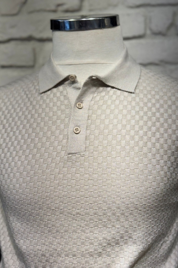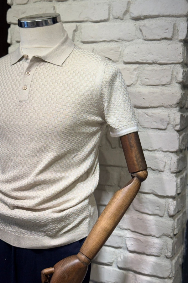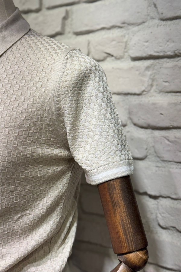 Triko Bej Düğmeli Polo Yaka T-Shirt Dama