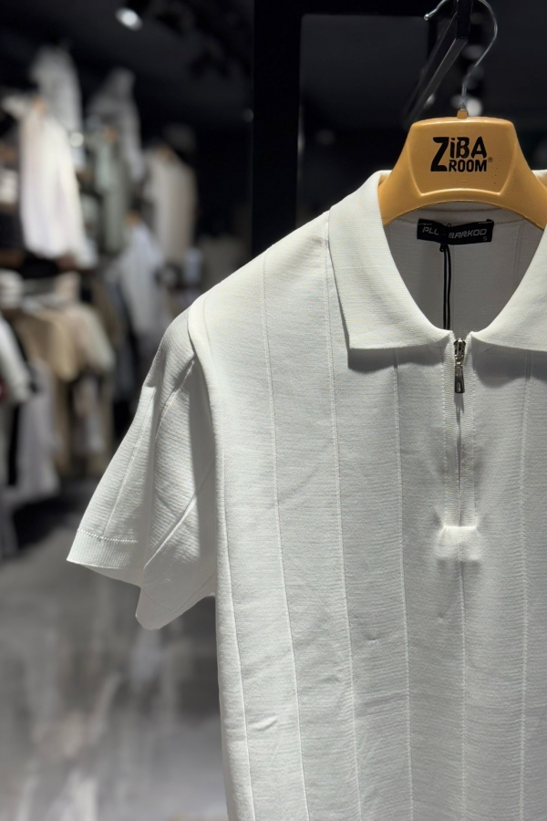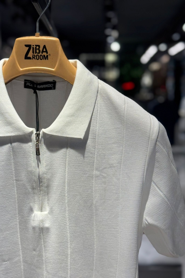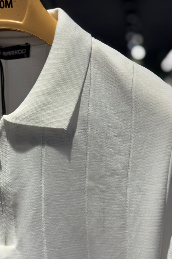 Triko Beyaz Fermuarlı Polo Yaka T-Shirt Düz