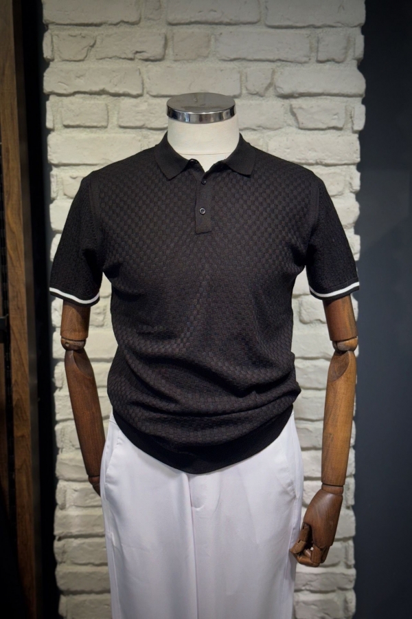 Triko Siyah Düğmeli Polo Yaka T-Shirt Dama