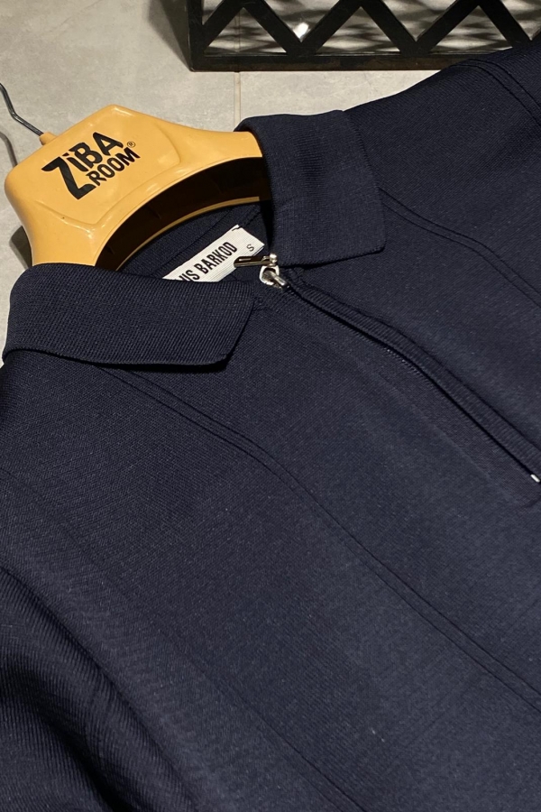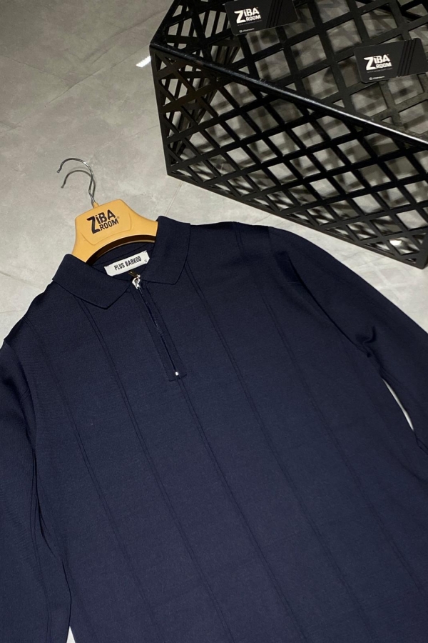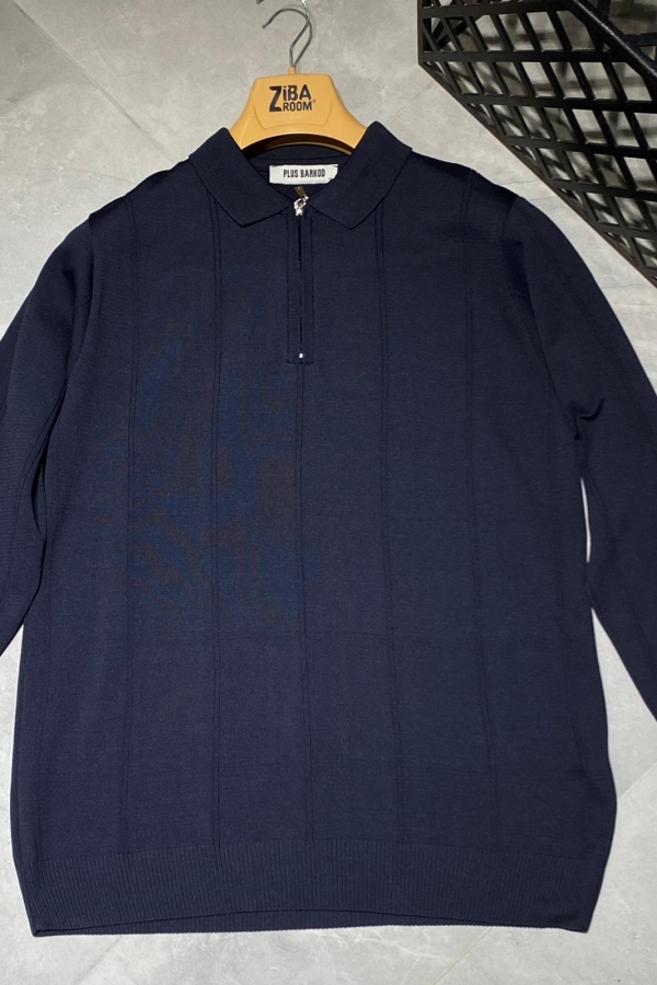 Yakalı Fermuarlı Çizgili Triko Kazak