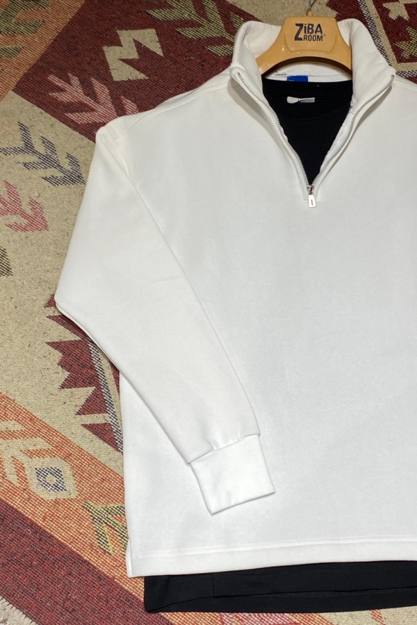 Yarım Fermuarlı Boğazlı 3 İplik Kazak