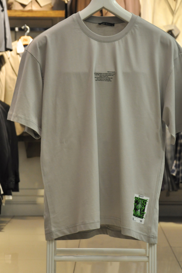 Bisiklet Yaka Yazı Baskılı Oversize T-Shirt Gri