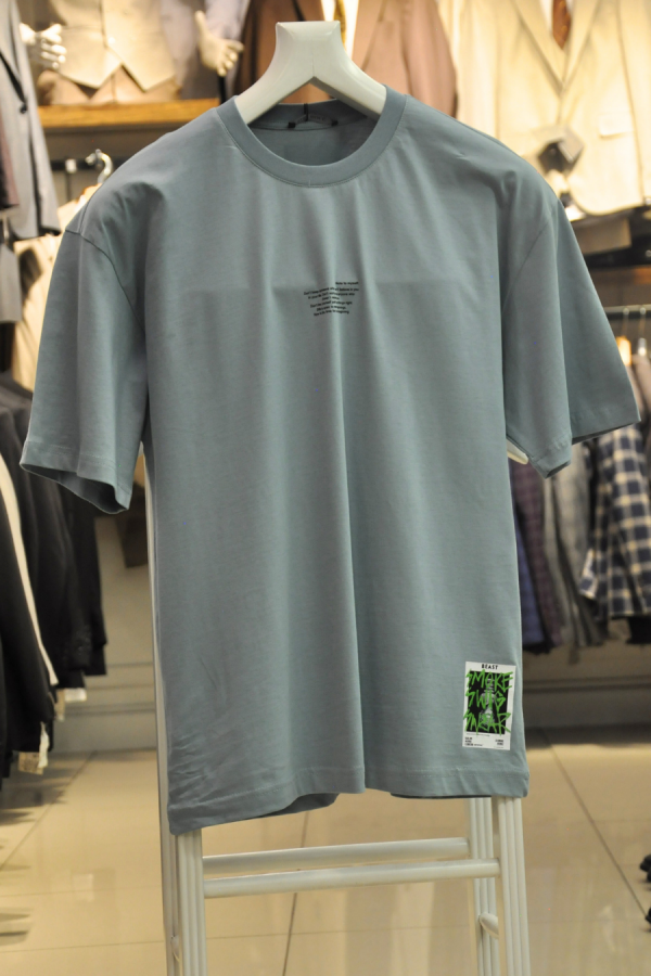 Bisiklet Yaka Yazı Baskılı Oversize T-Shirt Soft Mavi