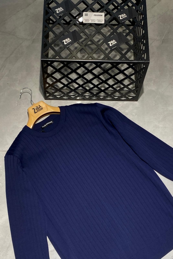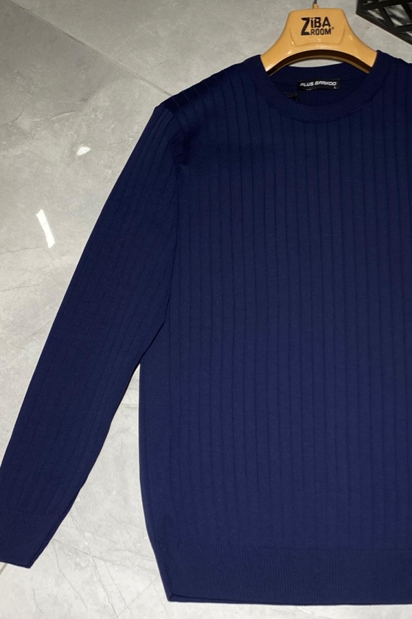 İnce Çizgili Yuvarlak Yaka Triko Kazak