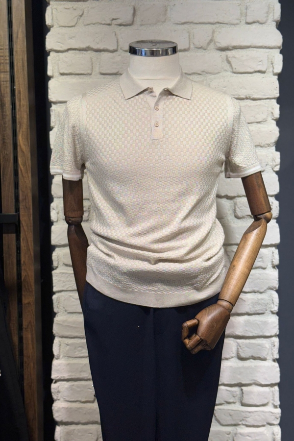 Triko Bej Düğmeli Polo Yaka T-Shirt Dama