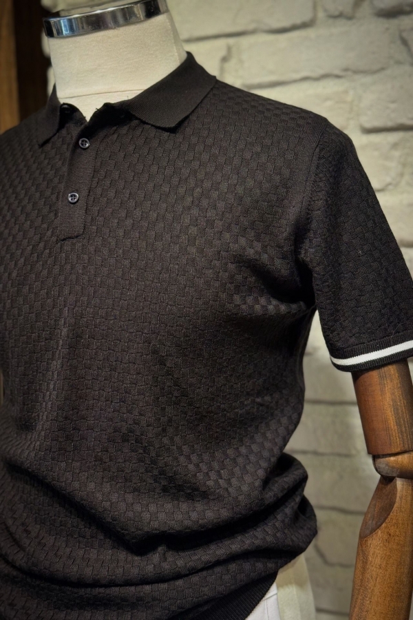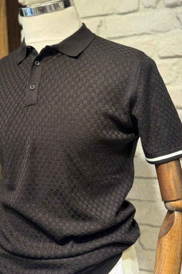 Triko Siyah Düğmeli Polo Yaka T-Shirt Dama